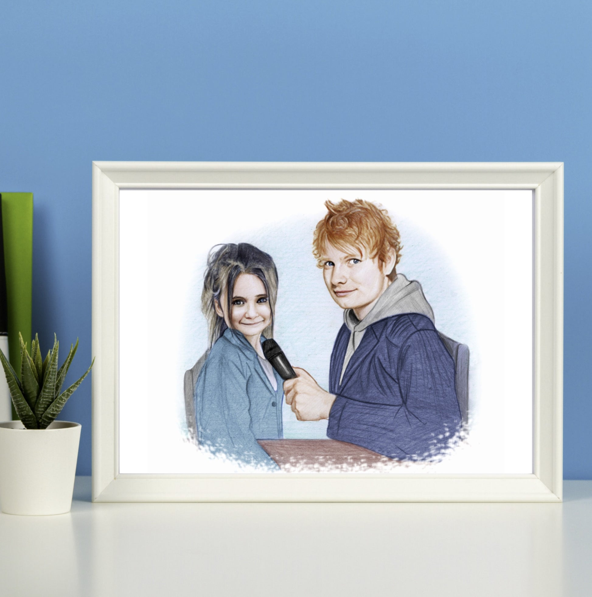 Our color portrait style is fun and our most popular style. It can be a vibrant addition to any room and makes a wonderful gift. We can even draw old black & white photos as color to really bring the past back to life.
